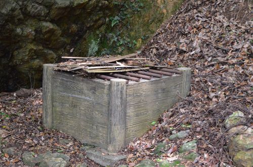 En redescendant en direction du téléphérique, je passe à côté du puits de Honmaru. L'eau étant indispensable à la survie des hommes sur place, on creusa quatre puits dans le roc afin d'y stocker les eaux de pluies. Un seul puits était alimenté par une source. Trois puits se trouvaient à l'ouest du château et un seul à l'est.