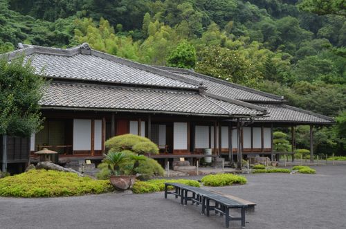 Plus tard, durant la période Meiji, le 29 ème lord, Tadayoshi Shimazu ainsi que son fils, Tadashige Shimazu (30 ème lord) vivront à cet endroit. Le jardin s'étend sur une superficie de 50 000 m² et offre une superbe vue sur l'île de Sakurajima. Il décrocha d'ailleurs le titre de site scénique en 1958. La résidence Iso, qui se trouve au centre du jardin (ci-dessous) fut reconstruite en 1884 avant que Tadayoshi n'en fasse sa résidence principale pendant environ une dizaine d'années, à partir de 1888. Elle était toutefois devenue la résidence principale de la famille dès 1871. Les portes de cette résidence sont désormais ouvertes au public et l'on peut y voir la chambre de Tadayoshi ou bien celle de Tadashige enfant.