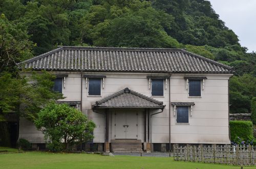 En 1892, Tadayoshi Shimazu érigea une usine (ci-dessous) appelée Shuseijo qui servit à la fabrication de balles, d'épées et de poteries, jusqu'en 1915. Vint ensuite le complexe Shuseikan (deuxième photo), le premier modèle du genre dans le pays. 1200 ouvriers travaillaient alors sur place. Ce complexe fut bâti par Nariakira Shimazu et fut utilisé dans différents domaines de l'industrie (construction navale, industrie métallurgique, filature, fabrique de canons, verrerie, industrie du télégraphe, développement de soins médicaux, chimie...). On peut aujourd'hui visiter ce bâtiment mais aucune photo intérieure ne peut être prise. Je découvre sur place l'histoire de la famille shimazu, le récit du développement des relations avec l'Occident, l'expédition armée vers la Corée, le système éducatif Goju, des vitrines contenant palanquins, armures, canons, armes et poteries de l'époque. Une galerie de photos nous montre la famille Shimazu et dans une autre partie du bâtiment sont rassemblées plusieurs machines industrielles utilisées autrefois.