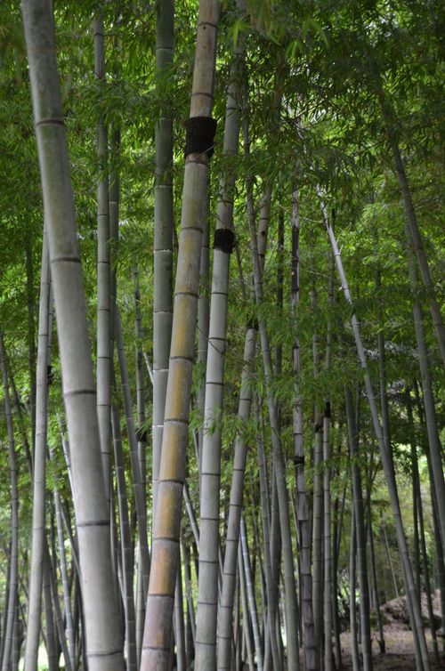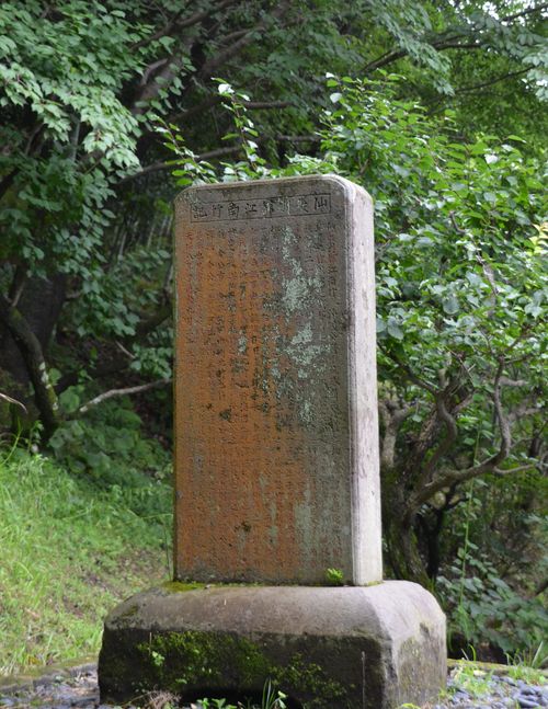 Je grimpe dans la partie supérieure du jardin où le calme règne. Une forêt de bambous y a poussé depuis 1736. A l'origine, deux pieds du bambou moso, très répandu en Chine, et rapportés du royaume de Ryukyu furent plantés et s'acclimatèrent si bien ici qu'ils prolifèrent depuis (photo). Un monument commémoratif y fut érigé en 1837 (photo).