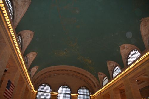 Deux particularités distinguent ce plafond : Le ciel est en arrière-plan et les étoiles sont légèrement décalées et cette vision du ciel ne correspond pas tout à fait à la vision réelle . On pense que cela est du au fait que celui-ci a été peint à partir d'un manuscrit médiéval qui dépeignait le ciel différemment.Lorsque la famille Vanderbilt, commanditaire des travaux, apprit cela, elle maintint l'idée que cette peinture représentait Dieu admirant l'univers. Si vous regardez attentivement, vous apercevrez un petit cercle noir au milieu des étoiles et juste au-dessus des poissons : Celui-ci fut fait en 1957 afin de permettre de lever légèrement en position verticale le missile américain Redstone alors fièrement exposé au public dans le grand hall. Les Etats-Unis essaient à l'époque de contrecarrer l'arrivée de la fusée soviétique Spoutnik. Cette tâche noire dans le plafond demeure en tant que souvenir des nombreux évènements vécus à ce jour par lea Grand Central Station.