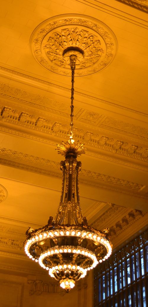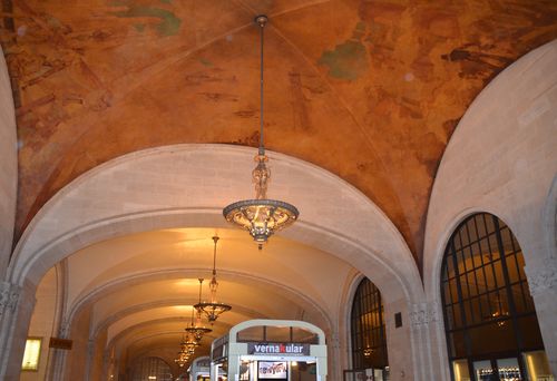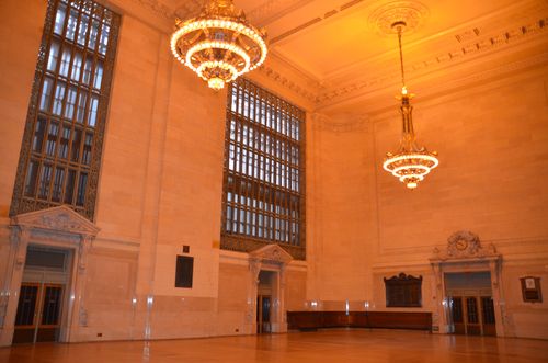 Je pénètre maintenant dan le Hall Vanderbilt (ci-dessous). Du nom de la famille Vanderbilt, ce hall se trouve juste à côté du hall principal. Aujourd'hui utilisé pour divers évènements, cet endroit servait autrefois de salle d'attente pour les passagers. J'admire au passage les lustres (deuxième photo).