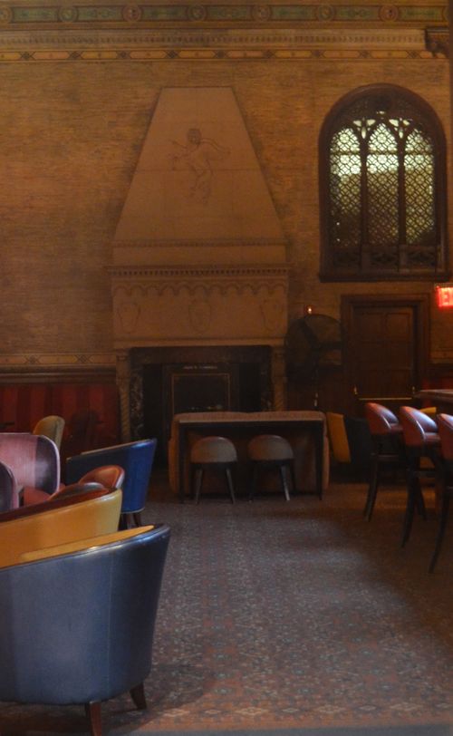 Outre les quais, la gare dispose aussi de bars et de restaurants comme Oyster Bar (ci-dessous) ou Campbell Apartment (deuxième photo ci-dessous) réputé pour ses cocktails et son décor magnifique. D'une superficie de 330 m2, l'endroit fut d'abord loué en 1923 par John Campbell, petit fils de Cornélius Vanderbilt, le propriétaire de la New York Central Railroad, qui construisit aussi la Grand Central Station. Il s'agissait alors d'une pièce unique de 18 mètres de long sur 9 de large et près de 8 mètres de hauteur de plafond. On y trouve encore aujourd’hui une énorme fausse cheminée (visible sur le photo) dont Campbell se servait pour y cacher un coffre-fort en acier. Lorsque je passe, l'établissement est malheureusement fermé mais l'intérieur est dit-on splendide et représente un palais florentin du 13 ème siècle avec fenêtres à petits carreaux et un plafond décoré de superbes peintures. On y trouve aussi un balcon en acajou, toujours visible de nos jours. L'une des curiosités les plus marquantes du lieu était un tapis persan qui recouvrait presque la totalité du sol et qui aurait coûté 300 000 dollars de l'époque (soit 3,5 millions de dollars actuels). John Campbell avait équipé cet endroit d'un piano et d'un orgue. Ainsi s'en servait-il de bureau le jour et de salle de réception la nuit pour rassembler une soixantaine d'amis. A sa mort, cette pièce servira successivement de bureau ferroviaire puis de placard pour stocker les armes de la police, et même de prison. On restaura l'endroit en 1999 pour finalement lui donner le nom de Campbell Apartment. Le coffre-fort se trouve bien dans la cheminée, les peintures ont été conservées, et le bar est fait du même acajou dont on se servit pour créer le fameux balcon. En 2006, on modifia sensiblement le décor sur l'initiative de Mark Grossich, propriétaire du bar et locataire des lieux : Le rouge remplaça le bleu dans la palette principale de couleurs, une nouvelle moquette remplaça l'ancienne et on renouvela le mobilier d'intérieur. Le Campbell Apartment est désormais un bar haut de gamme connu pour ses cocktails.