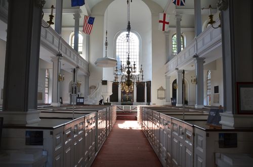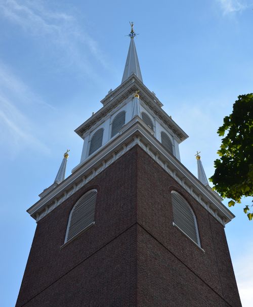 La renommée de Old North Church (en photo ci-dessus) débuta le soir du 18 avril 1775. Ce jour-là, le sacristain de l'église, Robert Newman, escalada le clocher avec deux lanternes supposées avertir les habitants d'un message de Paul Revere : « Les Britanniques sont en marche pour Lexington et Concord en passant par la mer ». Cet événement fut à l'origine de la révolution américaine. Artisan bostonien prospère et important, Paul Revere était un orfèvre franco-américain, un patriote de la révolution américaine qui fut immortalisé par ses gestes héroïques précisément lors de la bataille de Lexington et Concord, et sa course à cheval dans la nuit du 18 avril 1775. Il aida à organiser le système de renseignements et d'avertissement qui permit de garder un œil sur l'armée britannique. Après la guerre, il sera l'un des premiers à découvrir le potentiel de la production à grande échelle de biens manufacturés. Ce qui le fera considérer par certains historiens comme le prototype de l'industriel américain. Il créera aussi , en 1790, une des premières fonderies de cuivre des Etats Unis.