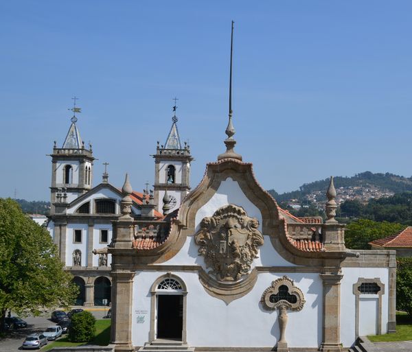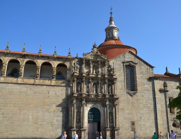 Juste à côté de l'église Sao Gonçalo se trouve l'église Sao Domingos (ci-dessous), bâtiment circulaire de style baroque qui fut érigé sur l'ordre des Dominicains. Le lieu n'est pas ouvert à la visite mais à deux pas de là, on peut encore trouver les restes de la Chapelle Santa Clara, comme ce blason qui figure encore sur le fronton (deuxième photo). Cette chapelle ainsi que le couvent qui était voisin sont depuis tombés dans l'oubli. Le monastère, fondé au XIII ème siècle par le reine Mafalda ne fut achevé qu'aux XVI-XVIII èmes siècles. Il est malheureusement devenu aujourd'hui la bibliothèque municipale de la ville et ses murs affreusement tagués ( à l'arrière du bâtiment) en disent long sur la conception artistique de certains.