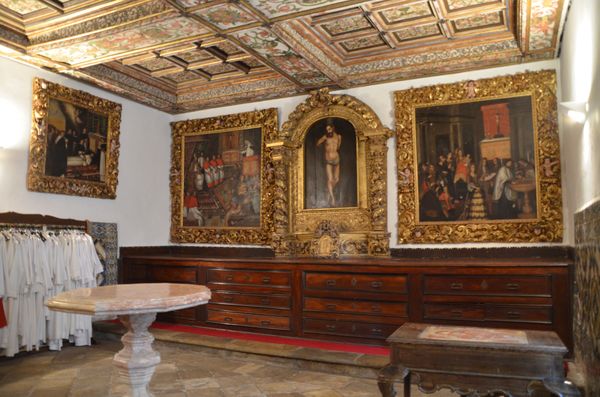 La sacristie est une pièce à ne pas manquer. Là encore, cela vaut le coup de lever les yeux pour admirer ses plafonds superbes (en photo ci-dessous). Amarante passe pour un joyau du nord et cela se comprend. On y trouve des demeures du XVII ème siècle avec des balcons en bois peints avec des couleurs vives. Les origines de cette cité sont mal connues mais le premier peuplement remonterait à 360 avant J.C. Amarante fut presque entièrement incendiée en 1809 à la suite du siège des troupes françaises conduites par le Maréchal Soult.