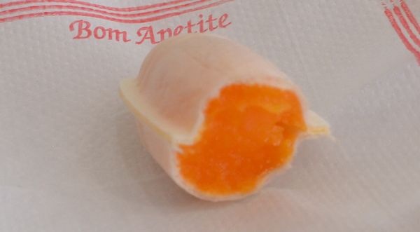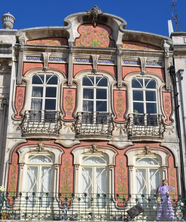 J'éprouve des difficultés à trouver une place de parking gratuite dans cette ville. Ici, tout est payant et il est à craindre que les édiles d'Aveiro aient adopté les mauvaises manies françaises qui est de toujours augmenter l'impôt sans réduire le budget. En discutant avec un habitant, je réussirai tout de même à trouver un endroit où me garer librement mais un peu en retrait du centre. Cela me fera marcher un peu plus mais me permettra aussi d'observer les façades de certaines maisons comme celle-ci en photo ci-dessus et que j'ai rencontré le long du canal. Je ne suis pas au bout de mes surprises car à peine arrivé dans la rue Joao de Mendonça, j'observe plusieurs demeures Art nouveau (ci-dessous) qui donnent un charme particulier à l'endroit. C'est dans cette rue commerçante, bordée de pâtisseries et de boutiques de souvenirs que je prends mon petit déjeuner. L'occasion m'est offerte de goûter la spécialité pâtissière locale: L'oeuf mou (ovo mole), une petit gourmandise enfermée dans une coque de pâte (deuxième photo ci-dessous) à base de jaune d'oeuf, et en forme de tonneau, ou de poisson. Cette gourmandise fut, dit-on, inventée par des Religieuses. Si vous êtes prédisposé au cholestérol, mieux vaut éviter! C'est aussi dans cette rue que je trouve le bureau du tourisme. Ici aussi, le plan de la ville est vendu (0,20 €) et le jeune homme qui m'accueille me mentionne les lieux importants à découvrir dans la ville.
