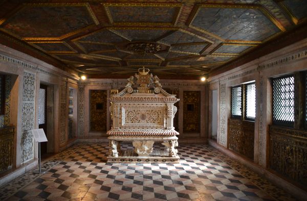A dix minutes de marche, me voici devant la modeste cathédrale de Sao Domingos (ci-dessous), datant du XV ème siècle, dont le portail sur la façade baroque comporte les Trois Grâces qui sont des ajouts de 1719. J'y rencontre deux couples de Français ( dont des Nantais!). Nous échangeons quelques instants avant de partir chacun de notre côté pour mitrailler le bâtiment de clichés photographiques. Je ne resterai pas longtemps dans cette cathédrale, il est vrai, moins impressionnante que celles que j'ai visitées préalablement au Portugal. De l'autre côté de la rue, face à la cathédrale se trouve le Musée d'Aveiro (deuxième photo) qui est logé dans ce qui était autrefois le Couvent de Jésus (datant du XV ème siècle). Je m'apprête donc à vivre à nouveau un grand moment d'histoire. C'est à cet endroit que la Princesse Joana, fille du Roi Dom Afonso V, s'était retirée et mourut en 1490. Deux œuvres remarquables rappellent la présence de ce personnage royal: Son tombeau (troisième photo), oeuvre du début du XVIII ème, qui fut dessiné par l'architecte royal, Manuel Antunes, avec des incrustations très fines de marbres de différentes couleurs. La seconde oeuvre est une peinture qui représente la Princesse avec des vêtements royaux mais surtout un visage triste et résigné. Le musée fut créé en 1911 afin d'abriter les pièces d'art qui avaient été recueillies dans les maisons et communautés religieuses dissoute avec l'extinction des Ordres religieux en 1834. J'y retrouve des collections notables de peintures, sculptures, gravures... qui font de ce musée un lieu incontournable. Plusieurs photos de cette visite sont disponibles dans l'album photos Europe. N'hésitez pas à les regarder! Mais revenons à la Princesse Jeanne (Joana). Celle qu'on appela Jeanne de Portugal naquit pendant la Reconquista , le 6 février 1452, alors que les Arabes se replient dans la péninsule ibérique. C'est la fille du roi et conquérant Alphonse V et d'Isabelle de Coïmbra. Jeanne perd sa mère alors qu'elle n'a que 3 ans et son père lui conserve ses titres malgré la naissance d'un frère cadet. Régente en 1471 pendant la conquête des côtes marocaines par son père et son frère, sa beauté réputée la fait demander en mariage par les princes les plus importants de son époque, mais, désirant se consacrer à Dieu, elle éconduit ses prétendants. Son père et son frère s'opposent d'abord à son projet puis lui donnent leur accord et Jeanne entre en 1475 au Couvent des Sœurs dominicaines d'Aveiro où elle vit dans la plus stricte simplicité et la plus grande humilité. Son père Alphone V meurt en 1481 et c'est son frère qui monte sur le trône sous le nom de Jean II. Il fera honneur à son père en conquérant les côtes et les îles africaines puis réduit avec énergie les abus et les pouvoirs de la noblesse de son pays. Jeanne restera l'un de ses plus fidèles appuis. Elle mourra à l'âge de 38 ans, le 12 mai 1490. Aveiro célèbre depuis le jour de sa mort, chaque année, par une procession en son honneur. Elle sera béatifiée par le Pape Innocent XII en 1693 et deviendra la Sainte patronne de la ville...