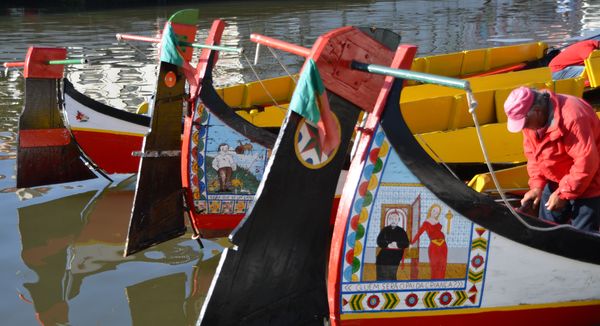 Désormais entourée d'une ria, Aveiro en tire profit car cela lui donne un certain charme: Les touristes sont invités à se promener sur les canaux de la cité à bord de ce bateau traditionnel (en photo ci-dessus) appelé moliceiro. Richement décorée cette embarcation est avant tout un bateau utilisé pour la récolte des algues marines (moliços) servant à la production d'engrais. Avec le temps, on déplore la diminution de cette activité qui ne fait plus vivre que quelques artisans. Les engrais chimiques sont dorénavant privilégiés pour l'agriculture...La lagune couvre 65 km² sur presque 50 km de long, s'étendant depuis Furadouro (au sud) jusqu'à Costa Nova , et sert de réserve naturelle de Sao Jacinto. On y voit aussi des marais salants dans cette zone sauvage surnommée « La Rota de Luz »(la route de la lumière) que le visiteur peut découvrir en été grâce à un bateau qui se rend d'Aveiro à Torreira par la lagune. Quant aux canaux, ils communiquent avec la ria par trois moyens: Le canal de Pyramides (dont l'entrée est marquée par deux pyramides) qui se prolonge dans le canal central, le canal de Sao Roque qui limite la ville au nord-ouest et la sépare des salines, puis le canal de Santos Martires qui court vers le sud-ouest.
