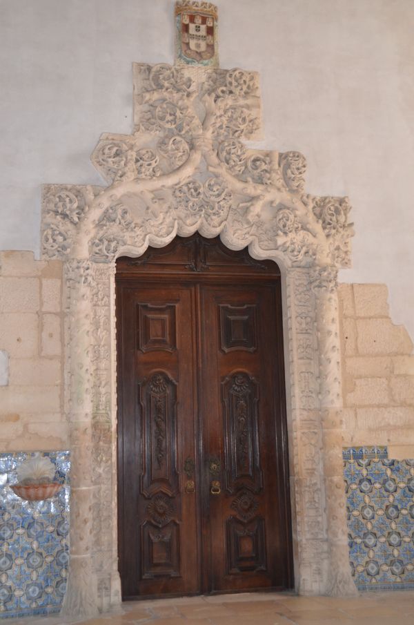La façade principale de l'église (ci-dessous) offre un portail gothique flanqué des statues de Saint Bénédicte et de Saint Bernard. On distingue aussi N.D de l'Assomption. L'aspect monumental de la façade résulte de la rénovation dans le style baroque qui eut lieu en 1725. Cette église fut bâtie en trois fois, entre 1178 et 1233-52. La voûte des nefs deuxième photo) s'élève à plus de 20 mètres de hauteur, dégageant un espace à la fois grandiose et austère, si cher à Saint Bernard. La Chapelle principale est entourée par le déambulatoire de chapelles voisines tandis que de larges vitraux inondent la célébration eucharistique de la lumière du jour. A côté de la sacristie médiévale, se tient, non loin de là, la « nouvelle »sacristie. Le portail de celle-ci (troisième photo) est la seul partie originale restante (datant du XVI ème siècle). Construite sous le règne de Manuel 1er, la sacristie dut être reconstruite après l'important séisme de 1755. On procéda donc à sa rénovation dans le style rococo (dont le toit qui représente l'apothéose de Saint Bernard). A l'intérieur de cette sacristie (que je n'ai malheureusement pas pu visiter) se trouver le reliquaire.