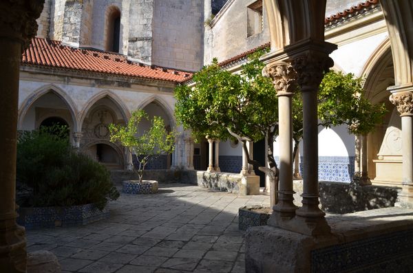 En contrepartie de leur aide pour contrer les Maures qui avaient envahi le pays, le Portugal leur offrit des terres et le pouvoir politique qui allait avec. Sous leur houlette, châteaux, églises et villes virent le jour. En dépit de sa dissolution par le Pape Clément V, le roi Denis 1er transforma cet ordre en Ordre du Christ. Cet ordre hérita ainsi des biens et des privilèges des Templiers. Les idéaux d'expansion chrétienne connurent une nouvelle heure de gloire lorsqu'Henri le Navigateur, le grand maitre, investit la fortune de l'Ordre dans les explorations. L'emblème de l'Ordre du Christ, la croix carrée, orna alors les voiles des caravelles qui traversaient les mers. Aujourd'hui, je retrouve cette croix carrée sur les trottoirs de la ville de Tomar.