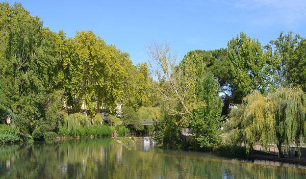 J'entame aujourd'hui ma troisième semaine de séjour au Portugal et je décide de partir à Tomar. Cette ville, qui fut fondée en 1157 par Gualdim Pais, le premier grand maitre de l'ordre des Templiers, est dominée par son château du XII ème siècle, qui abrite le Couvent du Christ. Je ne m'attarderai pas temps sur la cité traversée par la rivière Nabao (en photo ci-dessous) que par ce couvent. Fondée en 1160 par le grand maitre des Templiers, cet édifice présente encore de nos jours des témoignages de ces moines-chevaliers et de l'Ordre du Christ qui leur succéda. Mais qui sont ces Templiers qui acceptèrent , durant les XII ème et XIII ème siècles, d'aider les Portugais à combattre les Maures? L'Ordre du Temple est un ordre religieux et militaire issu de la chevalerie chrétienne du Moyen âge. Créé le 22 janvier 1129, à partir d'une milice appelée Les Pauvres Chevaliers du Christ et du Temple de Salomon, il accompagna et protégea les pèlerins qui se rendaient à Jérusalem dans le contexte de la Guerre Sainte et des croisades. Mais il participera aussi de façon active aux batailles de la Reconquista. Pour assurer ses missions et trouver les financements nécessaires, cet ordre constitua à travers l'Europe un réseau de monastères appelés commanderies. Il devint ainsi tout naturellement l'interlocuteur privilégié des grands de cette époque (XII et XIII èmes siècles), se voyant même confier la garde des trésors royaux et des actions à but non lucratif auprès de certains rois. Après la perte définitive de la Terre Saint en 1291, cet ordre fut victime de la lutte entre la Papauté et le Roi de France Philippe Le Bel. Et finit dissous par le Pape Clément V le 13 mars 1312 suite à un procès en hérésie.