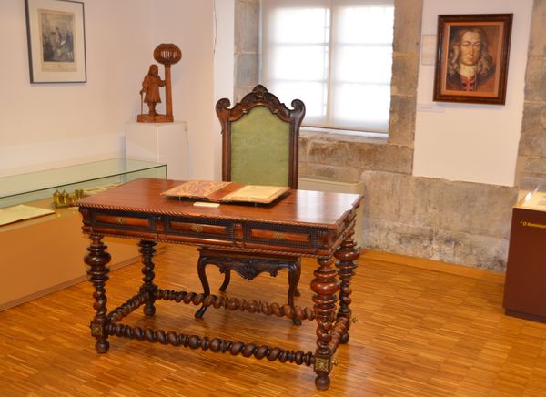 Pombal est une petite ville aux maisons blanchies à la chaux qui est associée au Marquis du même nom, lequel vint s'y retirer en 1777. Un imposant château (actuellement en cours de rénovation) y fut bâti en 1161 par les Templiers. Ce qui m'intéresse aujourd'hui est le Musée du Marquis de Pombal. Installé dans l'ancienne « Vieille prison » de la ville, l'édifice fut construit à la demande du marquis. Le musée a pour origine un travail de recherche, recueil et sélection de l'antiquaire Manuel Gameiro, un habitant de Pombal. Ce collectionneur réussit durant 25 ans à rassembler suffisamment d'objets précieux de valeur historique ayant appartenu au Marquis de Pombal. Un travail d'orfèvre! Le lieu est dédié à l'histoire d'une personnalité, d'un peuple et d'une époque. La création du musée intervint en 1978 grâce au don de la collection originale de Monsieur Gameiro. On trouve de nombreux documents (parmi lesquels un livre de 1717!) mais aussi une reconstitution du bureau du Marquis (ci-dessous).