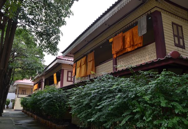 Un autre temple, tout proche, retient mon attention : Le temple Wat Suan Phu (ci-dessus). A l'ombre de deux grands hôtels modernes, celui-ci s'élève depuis la fin du XVIIIè siècle, très coloré. Il abrite en son enceinte un ravissant bot , une école, un autel chinois en bois sculpté dédié au bodhisattva Kuan-Im, ainsi que de pimpantes résidences monastiques (dernière photo) ressemblant étrangement à des chalets !Il n'y a sur place aucune information pour le visiteur étranger que je suis.