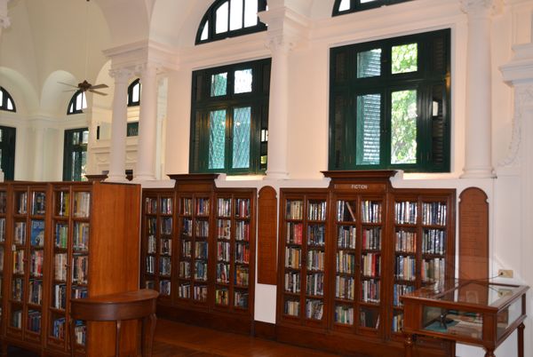 A dix minutes à pied de la rue Si Lom se trouve la bibliothèque Neilson-Hays ( en photo ci-dessus). A l'origine de cette initiative, plusieurs femmes dont Madame Jeanie Neilson Hays qui suivit son époux le Docteur T.Heyward, alors chef de l'hôpital royal de la Marine thaïlandaise, à Bangkok, en 1869. La même année, cette dame eut l'idée de fonder la »Bangkok Ladies Library Association », en compagnie des épouses des Docteurs Bradley et Smith, dans le but d’offrir un lieu de lecture pour les étrangers résidant dans le pays. Madame Neilson Hays en restera membre durant 25 années. De cette association naquit l'association bibliothécaire Neilson Hays qui subsiste encore de nos jours. Il faut dire qu'à l'époque, la communauté étrangère présente rassemblait de nombreux missionnaires protestants. Ces derniers ne parvinrent pas à convertir beaucoup de bouddhistes mais se rendirent utiles dans d'autres domaines (éducation et médecine). Le Docteur Bradley compta parmi ces êtres exceptionnels en introduisant par exemple la vaccination contre la variole, en réalisant la première chirurgie et en ouvrant le premier hôpital du pays. Il fut aussi à l'origine d'une première publication publique qu'il imprima grâce à une petite presse qu'il avait apporté avec lui à son arrivée au Siam. Sa fille et son épouse signeront l'acte de naissance de l'association bibliothécaire en 1869. Au début, les ouvrages trouvèrent refuge dans la résidence privée d'une paroisse baptiste avant d'être transférés, en 1871, dans une chapelle protestante ( les livres y resteront jusqu'en 1900). Madame Neilson Hays deviendra présidente de l'association en 1895 : Danoise de naissance, ayant immigré enfant aux Etats-Unis, elle arriva au Royaume de Siam en tant que missionnaire en 1881 et épousa le Docteur Heyward Hays six ans plus tard. Un bout de terrain acquis par l'association en 1914 permit l'érection d'une petite bibliothèque (à l'endroit même où elle se trouve aujourd'hui). Un autre bâtiment ( le bâtiment actuel) sera érigé par le Docteur Heyward, par amour pour sa femme qui décédera soudainement en 1920. L'architecte italien Mario Tamango ( ce monsieur était aussi l'architecte officiel du gouvernement de la Cour royale de Siam sous le règne du roi Rama V) participa à la construction de cet édifice qui ouvit ses portes le 26 juin 1922. L'entrée d'origine était la Rotonde (désormais utilisée comme galerie d'exposition). Celle-ci fait face à la rue Suriwong. Durant la seconde guerre mondiale, la bibliothèque servira de cantonnement pour les soldats nippons lors de l'occupation japonaise. Beaucoup de documents furent alors transférés et disparurent à jamais. D'autres livres qui avaient trouvé refuge à l'université de Chulalongkorn retrouvèrent la bibliothèque qui rouvrit en 1947 avec 8000 ouvrages. Aujourd 'hui, l'endroit compte plus de 25000 documents ( dont certains sont consacrés tout particulièrement aux enfants, ou abordent la Thaïlande et l'Asie du sud-est). Un jardin et un café complètent l'installation tandis que des activités sont organisées tout au long de l'année. Douze volontaires (uniquement des femmes! Comme cela était stipulé lors de la création de la bibliothèque) se relaient auprès du public.