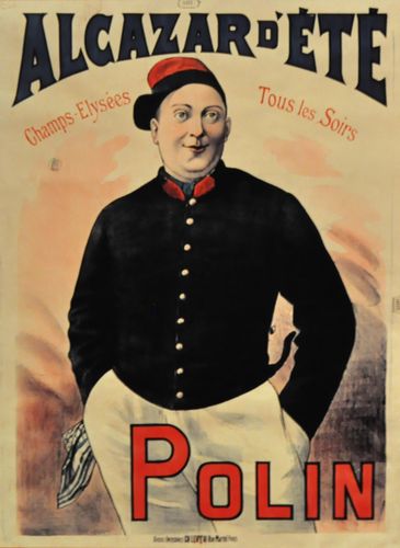 L'uniforme permet au soldat de se distinguer des civils : Il sert au militaire à prendre toute sa place dans l'armée, en exprimant visuellement son grade, son unité et son arme d'appartenance, et au civil pour appréhender la façon de s'adresser au soldat. Heureusement, il n'y a pas que la vie de caserne et les militaires se retrouvent régulièrement sur les champs de manœuvre, souvent aussi lieux de promenade pour les curieux. Le soldat est hébergé sur le camp ou bien chez l'habitant (il dispose alors d'un billet de logement comportant le nom et l'adresse de la personne qui va l'héberger) lorsque l'entrainement est prolongé. Civils et militaires se retrouvent alors en contact et le camp devient un lieu de divertissement où l'armée se met en scène. Durant les permissions, le soldat , qui peut découvrir la ville la plus proche de son cantonnement et les distractions, sert ainsi de sujet d'inspiration pour bon nombre d'auteurs de pièces de théâtre et de livrets. « L'Assiette au Beurre » (1901-1912) fut ainsi l'un des hebdomadaires satiriques les plus prisés de la Belle Epoque, se composant généralement d'une quinzaine de dessins réunis autour d'un thème et accompagnés d'un texte court. Les morceaux choisis pour cette exposition témoignent du ton anti-militariste de cette revue. La musique militaire prend de l'essor durant la seconde moitié du XIX ème siècle, et les instruments à cuivre viennent compléter les percussions et les instruments à vent déjà utilisés pour communiquer les consignes. Les musiciens font profiter la population des villes de garnison de leurs talents en jouant plusieurs fois par semaine sous les kiosques, transformant ces concerts en moments forts de la vie sociale. Les auteurs de chansons militaires et les comiques troupiers s'en donnent aussi à cœur joie en mêlant tradition militaire et parodie ( comme ci-dessus, l'affiche du chanteur Polin).