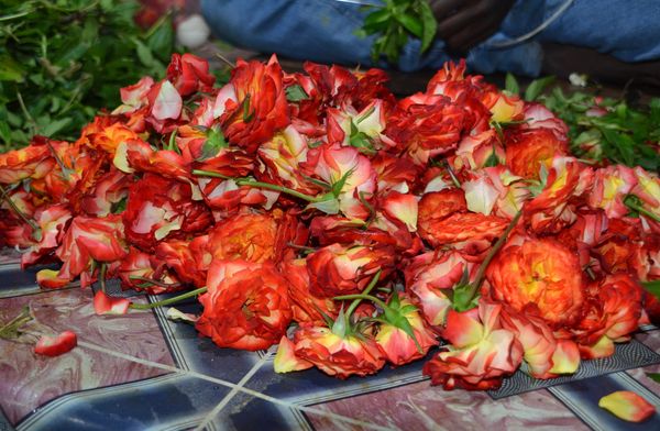 De passage en Inde, j'ai décidé de vous faire une fleur en vous emmenant au marché aux fleurs de Russell, à Bangalore. Sur place, on peut aussi y faire son marché car on trouve entre autres fruits et légumes. J'ai toujours été subjugué par la beauté des compositions florales rencontrées dans les hôtels. De nombreuses fleurs entrent dans leur composition, dont les roses et les fleurs de jasmin au parfum si délicat. Je suis merveilleusement accueilli à mon arrivée sur place. Et l'on ne me refusera jamais une prise de photos. Certains viendront même poser pour moi.