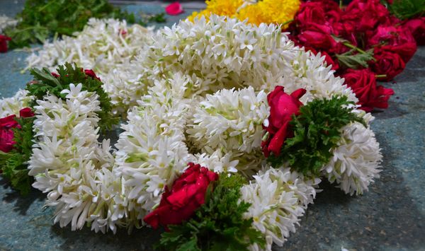 Les fleurs sont utilisées par les femmes indiennes qui se les mettent dans les cheveux, comme les œillets d'Inde ou les colliers de jasmin. Les habitants offrent aussi des fleurs à leurs dieux, sous la forme de guirlandes colorées. Les croyants donnent des fleurs au prêtre, lequel va ensuite les disposer auprès des dieux. Il est donc courant d'assister à des ventes de fleurs en gros (par sacs entiers) sous la forme de pétales. Les fleurs servent aussi à orner les bâtons d'encens destinés à décorer images saintes hindoues ou chrétiennes ou bien des versets du Coran. On la trouve par terre dans les maisons, les usines et les magasins. Mais aussi dans les moyens de transport (bus, taxis, tuktuk...). Des tapis de fleurs, appelés pukkalam sont dessinés à même le sol.