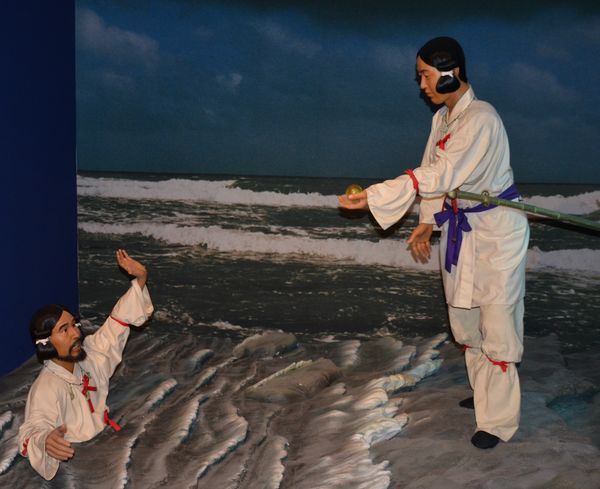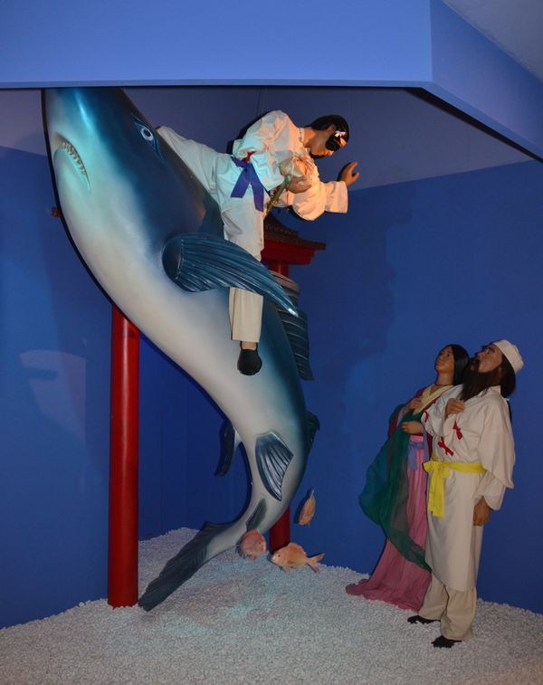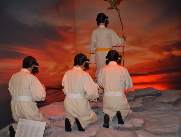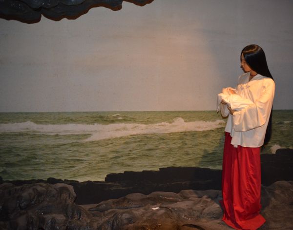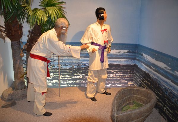 Musée de cire du Mythe de Hyuga, sur l'île d'Aoshima, sur la gauche dans la rue conduisant au sanctuaire. Sonner pour appeler quelqu'un au comptoir. Entrée: 600 yens ( + 100 yens pour le petit guide). Durée de la visite: 20 minutes environ. Photos autorisées. Site internet: http://www9.ocn.ne.jp/~aosima/english-yuisyo.html