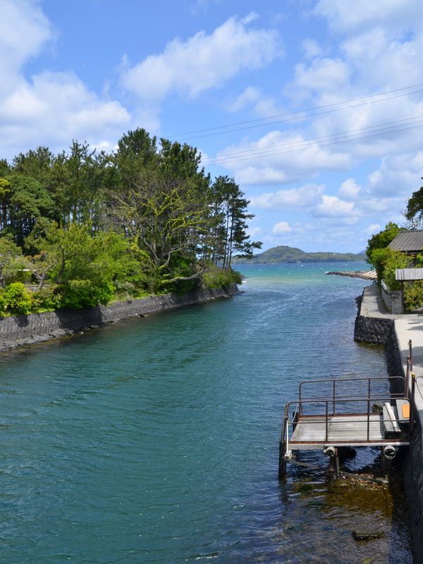 Le parc de Shizuki est un lieu très couru par les habitants d'Hagi et on y accède en franchissant un canal qui s'ouvre tout près de la plage Kikuyagara (ci-dessous), canal sur lequel on peut se promener en bateau. Un embarcadère permet d'ailleurs aux touristes d'embarquer pour une croisière. En regardant bien, et par temps ensoleillé, on peut observer de braves tortues en train de bronzer sur des pierres des douves. L'endroit est réputé pour ses cerisiers « Midori Yoshino » qu'on ne trouve que dans cette ville et qui offrent au printemps une abondante floraison avec de beaux pétales blancs en forme de poire (photo ci-dessous). Le parc rassemble plusieurs monuments dont le mémorial de Maeda Magoemon quinaquit à Hagi en 1818 et qui fut un officiel de haut rang du clan Mori. Il décéda dans la prison de Noyama car il fut accusé d'avoir participé à la Rébellion de Hamaguri (qui eut lieu à Kyoto le 20 août 1864) pour le clan du domaine de Choshu. Cette rébellion fut le fruit de groupes pro-impériaux et anti-étrangers qui se rangeaient sous le slogan »sonno joi » (visant à expulser les Barbares). Une inscription monumentale se dresse également dans ce parc en souvenir du château disparu. Plus loin, s'élève fièrement, le temple Shizuki Yama (troisième photo ci-dessous) qui fut bâti près du château en 1878 et abrite les sépultures de cinq seigneurs du clan Mori (Motonari Mori, Takamoto Mori, Terumoto Mori, Takachika Mori et Motonori Mori) et celles de douze autres seigneurs. Un petit jardin typiquement japonais avec son bassin accueille les visiteurs au pied du temple.