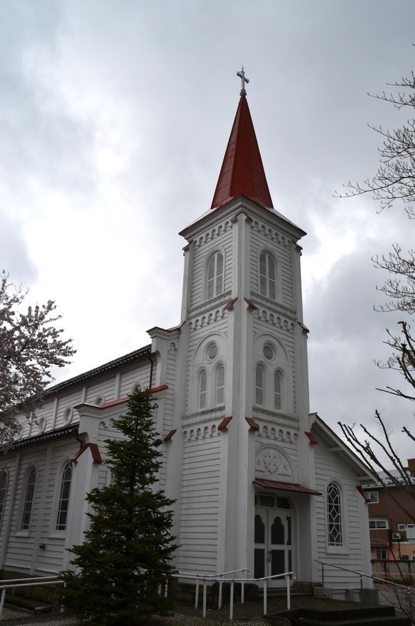 J'ai entendu parler d'une église catholique à Tsuruoka (ci-dessous) et compte bien m'y rendre. Elle est située à cinq minutes de marche du parc de la ville, ce qui est bien pratique. Une fois sur place, il se met soudainement à tomber des cordes et je me réfugie à l'intérieur de l'édifice. Pas étonnant que le salé du Tohoku soit aussi bon, avec tout ce qui tombe... J'apprends que cette église fut construite par le Père Papineau, en 1903. En dépit de recherches, impossible d'en savoir plus sur ce prêtre dont je suppose qu'il était un missionnaire québécois ( d'après le nom?). On retrouve dans la construction réalisée par le maitre-charpentier japonais Tomitaro Souma, originaire de Mikka-machi (Tsuruoka), le style architectural romanesque qui fait un peu penser à la reconstitution d'une cathédrale en modèle réduit. A l'intérieur, une superbe Vierge (noire) avec l'enfant ainsi que des orgues dans la partie haute de la nef, peuvent être observés. Ce bâtiment fut classé en tant que trésor préfectoral en 1973. C'est la plus vieille église de la région du Tohoku.