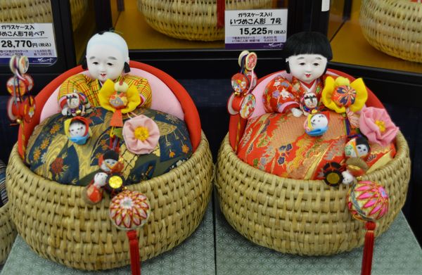 Sur le chemin du retour, je m'arrête quelques instants à une boutique de souvenirs. Des poupées Anesama (en photo ci-dessous) sont une spécialité de la région. Anesama signifie « poupée sœur ainée ». Elle est faite de papier washi de haute qualité, de forme tri dimensionnelle et possède souvent une coiffure complexe, et ressemble à s'y méprendre à ces décorations en tissu dont on recouvre les théières pour les maintenir au chaud. J'aperçois aussi de superbes boules « goten » (deuxième photo) en vitrine. Une excellente idée de cadeau!