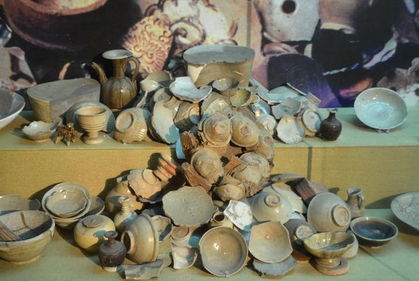 Sous la dynastie des Song, la céramique tient aussi une place non négligeable. Alors que les fours chinois du nord produisaient des pièces destinées à la cour impériale, les fours du sud du pays produisaient de la vaisselle ordinaire destinée à l'usage local mais aussi à l'exportation, ressemblant aux articles produits dans le nord du pays. Le four de Xicun était localisé au nord de Guangzhou et produisait des porcelaines destinées à l'exportation et qui auraient pu être réalisées par n'importe quel autre four chinois. Cette vaisselle était recouverte d'une glaçure le plus souvent bleu pâle, parfois noire, marron, assortie de tons verts (obtenus à des températures de cuisson plus basses). On relève 29 types d'articles (parmi lesquels des bouilloires à tête de phénix comme sur la photo ci-dessous, des jarres, des vases, des boites... ) dont de grandes assiettes aux tons bleu pâle, avec des chrysanthèmes et des pivoines marrons en guise de décorations au centre et des motifs floraux sur les bords. L'influence arabe est parfois de mise et les peintures sont colorées ou à dominante marron. De nombreux restes de cette vaisselle furent retrouvés au fond de la mer au large des îles de Xisha et dans le sud-est asiatique.