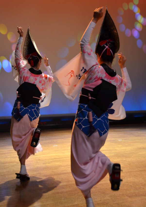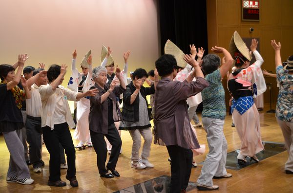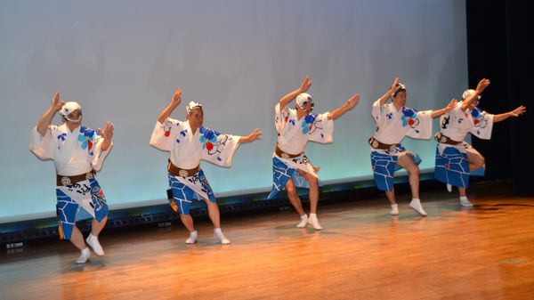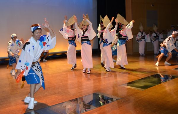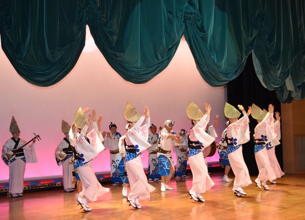 La danse d'Awa est un autre type de spectacle. Un musée lui est consacré à Tokushima (au pied du téléphérique pour le Mont Bisan). Il relate l'origine de cette danse, aborde le « Bon Festival » de la ville tout en décrivant l'évolution de la danse à partir de cette fête et jusqu'à nos jours. Une représentation est justement donnée à 14h00 et nous découvrons lors de celle-ci que cette danse est très populaire. L'animateur sur scène nous explique comment exécuter la danse Awa et le public évoluera plus tard sur la scène, en compagnie de la troupe (ci-dessous). L'origine de la danse Awa est incertaine et on hésite encore aujourd'hui entre trois explications: Cette danse puiserait ses origines dans le festival Bon qui se tenait au mois de juillet (calendrier lunaire). Elle serait le résultat de différentes influences artistiques comme la danse improvisée Nikawa et la danse en équipe Kumi Odori. On pratiquait en effet ces danses au festival Bon en hommage aux ancêtres.