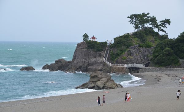 A Katsurahama, se trouve une plage magnifique (en photo ci-dessous) où il est malheureusement interdit de se baigner à cause des courants forts qui sévissent dans la zone. Celle-ci est située au bord de l'océan Pacifique, et à l'intérieur d'un grand parc avec une forêt de pins, le parc Katsurahama. C'est l'une des 100 plus belles plages du Japon. On trouve juste devant cette plage l'aquarium de Katsurahama, mais je plains les animaux (lions de mer et dauphins) qui s'y trouvent car ils n'ont pas beaucoup d'espace pour nager.