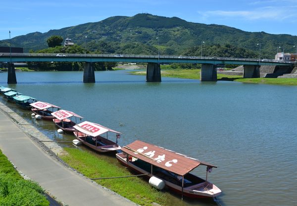 La rivière Hiji (ci-dessous) abrite les bateaux qui servent à la pêche au cormoran. Celle-ci se déroule principalement le dimanche et fait partie des curiosités locales. Cette méthode de pêche traditionnelle utilise en effet les oiseaux pour pêcher en eau douce. La pêche au cormoran est pratiquée au Japon depuis 1300 ans, mais, faute d'être rentable, est désormais devenue une activité purement touristique et saisonnière (de mai à octobre). Les cormorans utilisés sont des oiseaux sauvages , capturés en mer, puis formés pour la pêche. Un lien fort entre le pêcheur et le cormoran est indispensable afin d'obtenir un résultat et d'ailleurs, les maitres de pêche considèrent souvent leurs oiseaux comme des membres de leurs familles. Durant sa formation, le maitre va jusqu'à masser la tête ou le ventre de l'oiseau et le traite avec douceur. Puis il l'emmène tous les jours durant deux semaines pour se baigner afin que l'oiseau s'acclimate à l'eau douce. Les animaux sont à ce moment-là nourris à la main par le pêcheur car ils ne se nourrissent pas naturellement dans l'eau douce. La survie moyenne de ces cormorans va de 14 à 15 ans ( mais le record de longévité a déjà atteint 26 ans). Pour contrôler les cormorans, on pose une ligature à la base du cou des animaux, qui les empêche d'avaler les gros poissons. Seuls les plus petits sont avalés. De plus, les pêcheurs attachent les pattes des oiseaux à une corde, pour les récupérer facilement. La barque utilisée pour cette pêche traditionnelle est une ubune. Elle mesure treize mètres de long. Le maitre de pêche (c'est ainsi qu'on appelle les pêcheurs) embarque avec deux hommes. (le nakanori et le tomonori). Ces deux hommes ont pour rôle d'attraper le poisson rapporté par les cormorans. Cette équipage pêche le ayu (poisson appelé sweet fish, car il descend le cours de la rivière). Lorsqu'on observe les hommes et les barques de pêche, on distingue plusieurs choses: Le matsuwariki est constitué de morceaux de bois de pin embrasé servant de torche pour éclairer autour de l'embarcation. Ces morceaux de bois sont à l'intérieur d'un récipient en fer appelé kagari. Le kagaribo est le support soutenant le kagari. Les tanawa sont ces cordes utilisées pour manipuler les cormorans. Le pêcheur utilise entre dix et douze de ces cordes à la fois. Le Tomonori est l'homme responsable de la conduite de l'embarcation. Tandis que le nakanori prête main forte au maître de pêche et au tomonori. Le maître de pêche, lui, manipule les oiseaux.