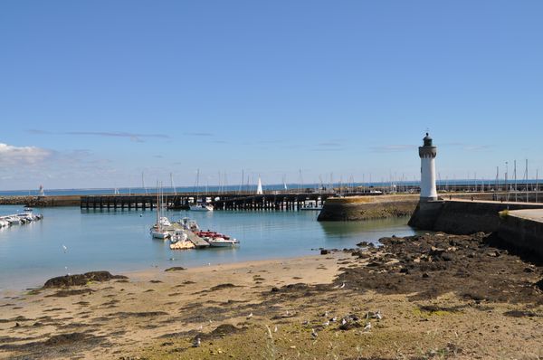 Le temps est aujourd'hui au beau fixe, malgré une bande nuageuse qui persiste au nord de la Bretagne en ce dimanche du mois d'août. Lionel me propose de nous rendre à Quiberon pour manger des crêpes à la Crêperie du Vieux port, une de nos adresses favorites. Cette crêperie fête en effet cette année ses quarante ans d'existence. Nous dégusterons nos crêpes dans le magnifique jardin intérieur, à l'abri du vent. Cet établissement se trouve au Port Haliguen (en photo ci-dessous) situé sur la baie de Quiberon. Ce qui était autrefois un vieux port de pêche typique est devenu désormais un port de plaisance qui peut accueillir jusqu'à mille bateaux. On peut, depuis ce lieu, accéder aux îles de Houat et de Houédic. Port-Haliguen fut l'endroit où débarqua le capitaine Dreyfus, la nuit du 30 juin au 1er juillet 1899, à 2h15. Il arrivait alors de l'île au Diable, sur un bateau appelé Sfax. L'affaire Dreyfus faisait grand bruit à l'époque et les autorités avaient, par précaution, annoncé que ce débarquement aurait lieu au port de Brest. De là, le capitaine Dreyfus empruntera un train spécial depuis Saint Jacques de La Lande qui le mènera à la prison militaire de Rennes, jusqu'à son deuxième procès. On peut, depuis 1932, apercevoir une plaque commémorative de cet événement sur le quai de Sinagot. Port-Haliguen aura préalablement vu débarquer, en 1795, 5400 émigrés royalistes venus d'Angleterre. Royalistes qui ne s'entendront jamais avec les 12000 Chouans morbihanais, lesquels repousseront les émigrés hors de la presqu'île. Les Royalistes, un temps retranchés à l'intérieur du Fort de Penthièvre, seront rapidement délogés par les Républicains. 748 d'entre eux y seront fusillés.