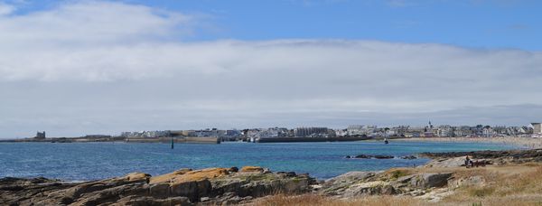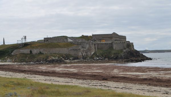 Quiberon sera une île jusqu'au XI ème siècle, puis le sable se déplacera peu à peu dans la baie créant ainsi un tombolo la reliant au continent. En 1746, y débarqua l'escadre anglaise de l'amiral Lestock, avec ses quarante vaisseaux. Le Capitaine général de Penhoët, alors gouverneur de la presqu'île refuse alors de se rendre. Des combats ont lieu, qui mettent en déroute l'armée armoricaine et provoquent la fuite des habitants. Le Duc de Penthièvre aménagera alors des redoutes, au vu des dégâts énormes. Et la construction du Fort de Penthièvre, de débuter en 1747 (ci-dessous). Quiberon est aussi célèbre pour la découverte de la stérilisation des aliments par l'un de ses habitants, au début du XIX ème siècle: Le confiseur Nicolas Appert publia la découverte dont il était l'auteur en 1810. Le développement des conserveries de Port-Maria date de cette époque. Port-Maria qui abrite également une délicieuse confiserie, la Maison Le Roux. Ce chocolatier et caramélier fut racheté il y a quelques années par un entrepreneur japonais qui en assure depuis le développement. Nous y reviendrons lors d'un autre reportage. Si vous passez par là, une escale gourmande s'impose! Sur notre route, une vue imprenable sur la ville de Quiberon (deuxième photo) nous permet d'apercevoir au loin le Château Turpault, à gauche, puis plus à droite, le port (d'où partent les ferrys pour Belle île en Mer, et enfin la superbe plage quiberonaise.