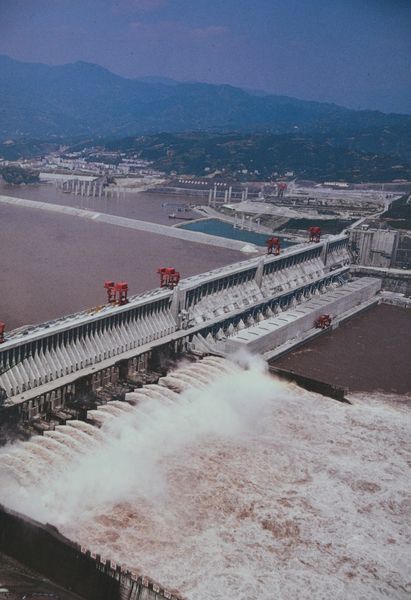Le barrage des Trois-Gorges, progressivement mis en service entre 2006 et 2009, est aujourd'hui le plus grand barrage hydraulique et la plus grande centrale hydro-électrique de notre planète. Situé à Sandouping (une ville créée de toutes pièces pour l'occasion!), près de Yichang, dans la province de Hubei, il se trouve à la limite de la région montagneuse du Haut-Yangzi et de la plaine du Moyen-Yangzi, en aval des Trois-Gorges. Le premier projet sur ce site remonte à 1919, date à laquelle Sun Yat-Sen fit la première proposition. Mais la guerre civile, qui ravageait alors le pays, ne permit pas son aboutissement. Une autre étude fut confiée, en 1944, à un membre du bureau de l'agriculture des Etats-Unis, avant d'être abandonnée trois ans plus tard, officiellement pour des raisons financières, mais plus vraisemblablement à cause des évènements liés à la révolution et à la prise de pouvoir du pays par les communistes. Le débat est relancé en 1949, sous le régime de Mao Zedong, suite à des inondations meurtrières. Des inondations qui pèseront dans la décision ultérieure car, en 1954, les eaux emportèrent 30000 personnes et laisseront 19 millions de sans-abris. Même les Soviétiques contribueront un temps à l'étude de la construction du fameux barrage. 1979 sera l'année d'approbation, par le ministère chinois des Eaux, du choix de l'endroit fait vingt ans plus tôt. C'est le premier ministre chinois Li Peng, ingénieur de formation, qui pousse à la construction du barrage, jusqu'à l'aboutissement de la décision finale, le 3 avril 1992. Les travaux débuteront quant à eux en 1994, en présence du président Jiang Zemin et du premier ministre Li Peng. Le projet requiert alors un investissement de 24,5 milliards de dollars. L'entrée en bourse de la société China Yangtze Power Co, le 18 mai 2006, à Shanghaï, s'achèvera sur une hausse de...44%. Et le directeur général de ladite société d'annoncer deux jours plus tard l’achèvement des travaux.