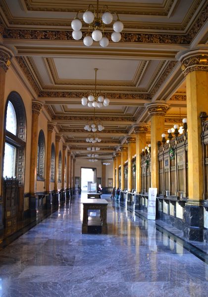 Ma dernière rotation de l'année me conduit à Mexico city. Celle qu'on appelle aussi Ciudad de Mexico (ville de Mexico), ville la plus peuplée de cet état du même nom. Située au centre du pays, dans la vallée de Mexico (un plateau situé à 2250 mètres d'altitude), la capitale du Mexique fut fondée en 1325 par les Mexicas (Aztèques). Elle était alors une ville précolombienne surnommée Tenochtitlan qui fut plus tard entièrement détruite par les conquistadores espagnols au début du XVI è siècle. A chacune de mes visites sur place, je suis assuré de trouver quelque chose à visiter et à découvrir tant la ville de Mexico est riche culturellement. Cette fois, mes pas me conduisent au Palacio de Correos de Mexico. Ce bâtiment est le palais postal de la capitale, connu également sous le nom de « Correo Mayor », et est situé dans le centre historique de la ville, tout près du Palais des Beaux-arts, où je vous ai déjà emmené. L'endroit fut érigé au tout début du XX è siècle au moment où la Poste mexicaine devint une entité séparée du gouvernement. Son architecture et sa construction étaient novatrices pour l'époque, et d'autant plus innovantes que la construction rassemble plusieurs types de styles donnant un résultat assez remarquable. On modifia le bâtiment au cours des années 1950. Le tremblement de terre de 1985 se chargea ensuite d'endommager sérieusement le palais qui sera restauré dans les années 1990 jusqu'à lui redonner son apparence initiale.