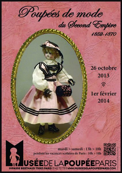 Exposition « Poupées de mode du Second Empire 1852-1870 », jusqu'au 1er février 2014, au Musée de la Poupée, Impasse Berthaud à Paris (3è). Tel : 01 42 72 73 . Métro : Rambuteau. Ouvert du mardi au samedi de 13h00 à 18h00. Entrée : 8€