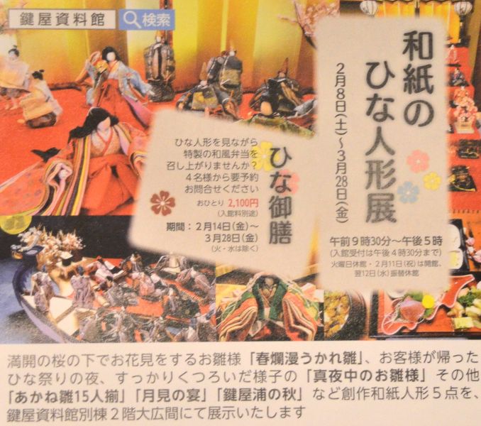 Musée Kagiya, 10-27 Tsutsumi-cho, Hirakata (Japon). Ouvert tous les jours (sauf le mardi). Exposition de poupées Hina, jusqu'au 28 février 2014. Entrée 200 yens. Horaires d'ouverture : 9h30 à 17h00.