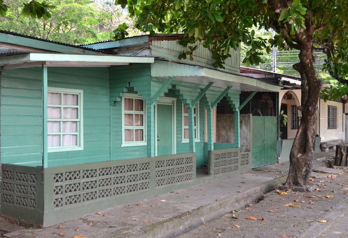 Notre prochaine étape est Las Juntas, une petite ville au pied des montagnes. Située sur la rivière Abangares, cette petite cité fut autrefois le centre de l'industrie minière aurifère du pays, de la fin du XIX è au début du XX è siècle. Elle s'est aujourd'hui reconvertie dans le tourisme. Ses petites maisons colorées en bois (ci-dessous), son joli parc (qui expose une ancienne locomotive qui servait jadis à tirer des wagonnets dans la mine), sa petite église catholique avec ses vitraux, son monument en l'honneur de tous ces mineurs qui contribuèrent à trouver l'or et l'argent dans les entrailles des montagnes alentours, parfois au péril de leur vie, et son éco-musée font partie des attractions locales.