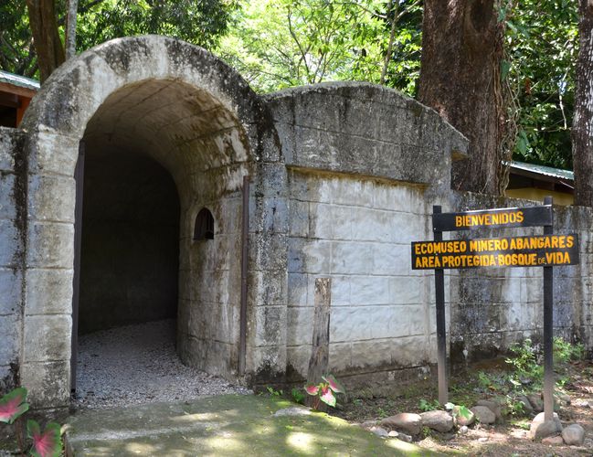L'histoire de la mine commence en 1884, lorsqu'un homme, Juan Alvarado Acosta, découvre de l'or. Il vend la mine à ses trois frères, Vicente, Paulino et rafael Acosta, lesquels la revendent en 1889 à la compagnie anglo américaine de développement minier. On exploita d'abord la fameuse mine puis on ouvrit de nouvelles saignées dans la montagne de La Sierra de Tilaran, à la recherche de nouveaux gisements. Des techniques nouvelles furent importées et les quantités d'or trouvées augmentèrent. Le cyanure et le mercure furent utilisés pour séparer l'or des autres éléments en utilisant un four spécial (en photo ci-dessous). On utilisa aussi bien d'autres matériels pour recueillir le précieux minerai et le traiter. L'éco-musée permet de découvrir ces objets dans une salle unique d'exposition mais aussi à l'extérieur (pour les machines). On peut ainsi admirer un ancien compresseur à air tout droit venu de New York dans les années 1900 (deuxième photo). Un ancien wagonnet est également exposé.