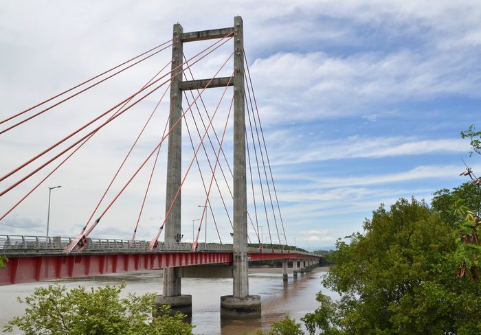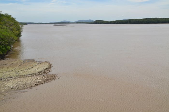 Après nos courses à Santa Cruz, nous prenons la route vers Nicoya, pour rejoindre le pont de l'Amitié (en photo ci-dessus). Nous nous trouvons alors sur la route 18, celle qui nous conduire jusqu'à la Panaméricaine. Il nous faut franchir le golfe de Nicoya (pour quitter la Péninsule de Nicoya) ainsi que la rivière Tempisque. Ce pont nous y aidera. La rivière Tempisque que l'on peut parcourir dans la parc national Paloverde offre ici son plus large bassin (ci-dessous) avant de déboucher dans le Pacifique. La route 18 est asphaltée et ne pose pas de difficultés particulières. Là encore, la campagne environnante est verdoyante, d'un vert cru qui me fait penser à la Bretagne ou à la Normandie.