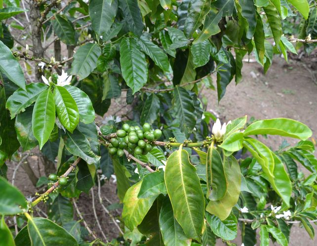 Le chemin est long du fruit à la tasse. Notre guide nous montre d'abord l'endroit où poussent les semis, qui donneront plus tard les futurs plants de café. En effet, ce dernier pousse dans un arbuste (photo ci-dessus) et le grain provient d'une baie, rouge à maturité. Chaque baie possède deux grains, qui sont cachés sous quatre couches de fruit. Il sera nécessaire de peler puis de sécher ce fruit afin d'en libérer le grain de café vert qui constitue 20% du fruit. Une fois séché et vieilli, le grain vert pourra être torréfié. Le plant de café peut vivre 150 ans dans la nature, mais produira de moins en moins. Sur une plantation, les plants sont coupés tous les 5 à 6 ans et entièrement renouvelés au bout de 20 ou 30 ans.