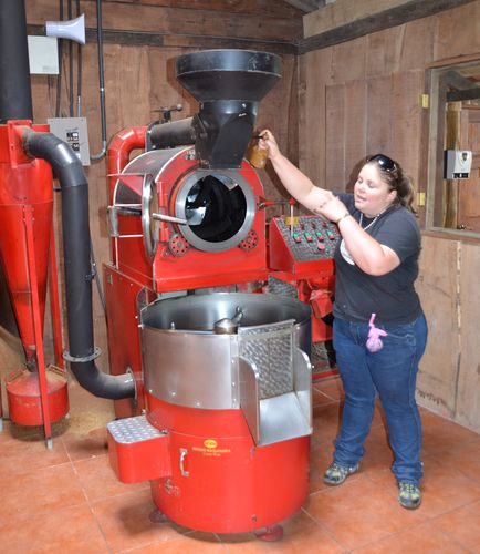 Enervey nous conduit maintenant dans l'atelier de torréfaction (ci-dessous en photo). Le café non torréfié n'a pas encore de goût ou d'odeur. Toute la saveur et les nutriments sont enfermés à l'intérieur. Pour libérer les arômes, on doit le chauffer à haute température (à 250°) pour que le grain craque et s'ouvre pour libérer ses bienfaits. On attend environ 20 minutes avant d'entendre le premier « crack ». Passée cette étape, chaque minute compte. En deux minutes, on a une torréfaction claire, puis deux minutes plus tard, une torréfaction foncée. Il est aussi très important de remuer les grains durant le processus de torréfaction afin d'obtenir un résultat uniforme. Plus on cuit le grain et plus il perd ses nutriments (dont la caféine).C'est l'occasion de parler des différents grains de café comme le grain vert : on apprend ainsi que ce grain est utilisé comme exfoliant, ou pour des massages. La capsule d'extrait de café vert, nouvelle sur le marché, est vendue comme produit miracle car le grain vert contient tous les nutriments de façon très concentrée. Les antioxydants contenus dans ce grain contiennent de l'acide chlorogénique qui modifie temporairement le métabolisme et permet à l'organisme d'accumuler moins de graisse. On dit cependant que le café peut être dangereux pour la santé. Tout dépend à quelle dose on le consomme. Des études récentes montrent qu'une consommation régulière de ce breuvage est bénéfique pour le corps comme pour le cerveau. On y retrouve des antioxydants excellents contre les cancers notamment de la prostate, du foie et du sein. D'autres maladies comme Alzheimer, Parkinson, le diabète de type 2, l'asthme, l'hépatite C et la sclérose en plaques peuvent être évitées (ou leurs effets retardés) grâce à la caféine. Le café réduit aussi le stress dû au manque de sommeil et agit sur l'humeur de la personne, prévenant ainsi la dépression. Il est donc profitable de boire du café mais quid des nouveaux cafés dont on nous parle depuis peu ? Je veux bien sûr parler du café équitable et du café bio : la certification équitable passe par un intermédiaire, Fair Trade International. Celui-ci a des standards de qualité qui, une fois respectés, permettent aux producteurs de rejoindre le cercle des producteurs vertueux. Fair Trade International jouera ainsi le rôle d'intermédiaire entre le producteur et le consommateur, en garantissant un certain nombre de standards de qualité. Et permettra entre autre aux producteurs de vendre leur café à des prix plus élevés, leur permettant à leur tour d'augmenter les salaires de leurs employés. Attention, équitable ne veut pas nécessairement dire vert. Certains standards visent une agriculture plus saine mais un café certifié équitable n'est pas synonyme d'organique.