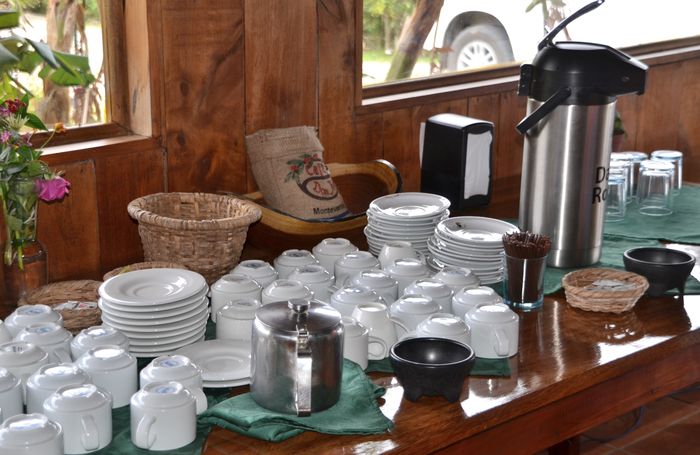 France remarqua hier une finca (ferme) sur notre route, peu avant notre arrivée à Santa Helena. Cette ferme, spécialisée dans le café offre aux touristes de découvrir la culture du café à travers une visite d'une heure trente. Nous saisissons l'occasion de nous y rendre cet après-midi, bien que nous n'ayons pas réservé à l'avance. Nous arrivons sur place à 13h20 et l'on nous annonce qu'une visite vient de commencer il y a vingt minutes. L'agent d'accueil nous permet très gentiment de rejoindre Enervey (la guide) et un jeune couple d'Américains déjà sur place.