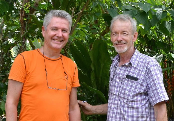 Je rencontre Henri Karczynski (en photo ci-dessous), le propriétaire de cette ferme. Allemand de naissance, mais ayant passé sa jeunesse aux Etats-Unis, à Chicago, il est arrivé ici il y a trente ans et a acheté cette propriété. Après avoir travaillé pour plusieurs organisations bénévoles étatiques, il crée cette villa aux épices en 1987. Soucieux de qualité, il développe une agriculture raisonnée et naturelle, obtient le label organique en 1992 puis le label biodynamic en 2000. Pour cultiver la vanille, il n'utilisera qu'un type d'arbre-hôte, en prenant soin de la mêler à d'autres plantes qui peuvent être combinées avec cette épice et la protège notamment des insectes nuisibles. Après avoir subi quelques années climatiques difficiles, Henry acquerra une expérience supplémentaire lui permettant de compléter ses connaissances en matière de sols. Son attention toute entière portera sur la non-utilisation de produits chimiques et l'enrichissement des sols par du compost et par l'utilisation des micro-organismes. Cette agriculture biodynamique, appelée aussi biodynamie, consiste à considérer toute ferme, ou tout domaine agricole comme un être vivant, le plus autonome et le plus diversifié possible avec le moins d'intrants (engrais, amendements, semences ou produits phytosanitaires) possible en ce qui concerne le vivant. Cette méthode encourage des préparations à base de plantes censées activer ou maitriser les forces cosmiques des planètes présentes dans le sol pour soutenir un bon processus végétatif et limiter le développement des parasites. Aujourd'hui, Henry a planté plusieurs variétés d'épices sur son exploitation, ainsi que des arbres fruitiers, des plantes médicinales et des fleurs. La diversité de la flore a apporté la diversité de la faune (oiseaux, singes...). Et de transmettre désormais son savoir aux étudiants, praticiens et aux visiteurs que nous sommes.