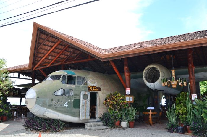 Il est temps pour nous de rejoindre Quepos, situé sur la côte Pacifique. Nous passerons par Jaco puis continuerons sur la même route. Cette station balnéaire, appelée aussi Puerto Quepos appartient à la province de Punta Arenas, et se trouve aux portes du Parc national de Manuel Antonio. L'endroit ressemble à un petit village typique costaricien, sans intérêt particulier. Les hauteurs sont occupées par le parc national autour duquel sont rassemblés hôtels, bars et restaurants modernes et américanisés. On se croirait à Malibu, tant le contraste de cette zone est saisissant avec le village costaricien d'en-bas. Nous sommes hébergés à l'hôtel Plaza Yara, sur les hauteurs. Rien à dire sur cet hôtel qui n'a que dix ans d'existence et qui semble fort sympathique (les animaux de la maison, un chat et un chien, nous rendent visite très gentiment en pénétrant sans bruit dans notre chambre pour y faire la sieste) . Une route conduit directement au Parc national Manuel Antonio et nous nous y rendons en éclaireurs pour nous rendre compte. Sur notre parcours, nous tombons sur le bar El Avion, dont l'originalité est de posséder un ancien avion cargo Fairchild C-123 (en photo ci-dessous). L'histoire de cet avion est originale : le 5 octobre 1986, un avion cargo du même type s'écrasait au sud du Nicaragua, abattu par les forces du gouvernement sandiniste. L'avion en question transportait armes et vivres à destination des rebelles nicaraguayens qui tentaient d'ouvrir un front contre le gouvernement de Managua soutenu par Cuba. A l'époque, les Etats-Unis démentirent avoir joué un rôle dans ce qui arriva mais cette affaire allait devenir le plus gros scandale des années 1980 : en effet, à cette époque, le président Ronald Reagan avait conclu un trafic de ventes d'armes avec l'Iran dans le but de libérer les otages américains. Une partie de l'argent de ces armes aurait servi à financer l'aide aux rebelles du gouvernement sandiniste. Les Etats-unis firent ainsi l'acquisition de deux avions Fairchild C-123, 2 avions C-7 et des armes. Une piste secrète avait aussi été aménagée dans un ranch américain de 30000 acres, au nord-ouest du Costa Rica. Le jour du crash de l'avion, Eugène Hasenfus (CIA) fut capturé par les Sandinistes. Le deuxième Fairchild C-123, lui, resta clouée au sol à l'aéroport de San José (Costa Rica) et sera racheté en août 2000 pour 3000 US$. Démonté, il fut transporté par bateau jusqu'à Quepos, puis remonté sur son lieu actuel, un bar de nuit ouvert le soir jusqu'à deux heures du matin.