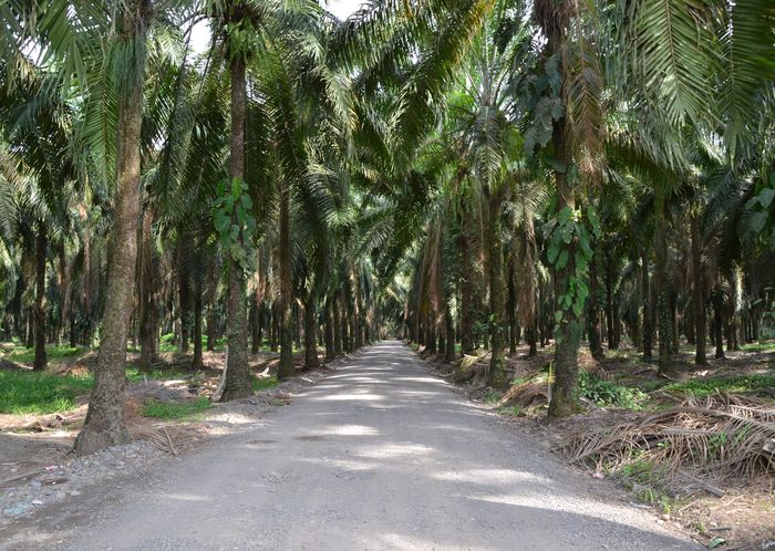 La culture du palmier à huile (ci-dessous en photo) se pratique sur 700 hectares et permet de produire une huile végétale, à raison de 1000 tonnes environ de fruits traités chaque mois. Ces palmiers tout droit venus d'Afrique, remplacèrent les bananeraies d'autrefois décimées par la maladie de Panama. Leurs fruits et leurs graines, riches en huile à usage alimentaire et industriel, sont devenus incontournables. Et fournissent désormais la première source de corps gras végétal au niveau mondial. Un palmier à huile donne des fruits toute l'année et deux fois par mois. Il peut produire jusqu'à 25 à 35 ans mais il arrive un moment où celui-ci devient trop haut pour permettre la cueillette des noix de palme.