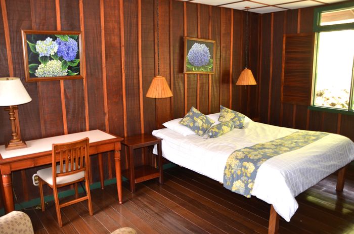 Premier point décevant : les hébergements. Un quart des hôtels qu'on nous avait affectés furent très décevants. A Boca Tapada, on nous envoya à Lagarto Lodge, un centre d'observation unique pour les oiseaux, selon l'agence, mais qui ne correspondait pas du tout à nos attentes. La chambre ressemblait davantage à une cabane qu'à autre chose, accès internet très médiocre, boutons électriques sales, état douteux de la salle de bains et des draps des lits, pas d'air conditionné et pas d'eau chaude. Le jeune homme qui nous accueillit était par contre charmant, mais cela ne fait pas tout. Les commentaires de l'agence non plus (« Enrichissez-vous de cette nouvelle expérience et transmettez-la à vos lecteurs » me lâchait Maëlle, une collaboratrice). Nous décidions finalement de nous rendre à un autre lodge que nous avions remarqué sur notre route, en venant au Lagarta Lodge, et finîmes par y poser nos bagages pour 48 heures, à nos frais.
