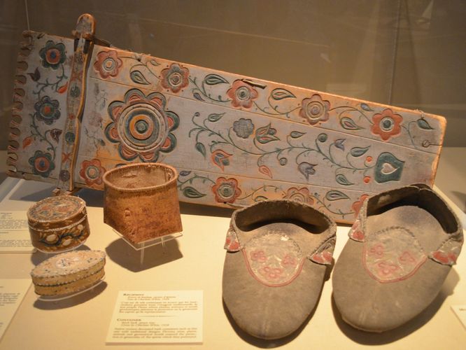 Les collections du Château Ramezay, qui comportent environ 30000 objets, sont classées de la manière suivante : la collection d'oeuvres d'art comporte à elle seule plus de 2000 dessins (comme ci-dessous), estampes, tableaux et gravures représentant des paysages canadiens et des portraits de personnages influents de l'histoire du pays. On y retrouve aussi la plupart des artistes ayant oeuvré à Montréal. La collection d'ethnologie amérindienne contient quant à elle plus de 700 objets et comprend entre autres des artefacts provenant de fouilles archéologiques réalisées dans des sites importants, comme ceux de Lanoraie et de Dawson. On trouve également des pièce provenant de toutes les régions du Canada, de la vallée laurentienne aux côtes du Pacifique. La collection d'ethnologie québécoise (deuxième photo ci-dessous) est, elle, composée de plus de 2000 objets illustrant la vie quotidienne des Canadiennes et des Canadiens des XVIII è et XIX è siècles. On y découvre notamment la vie personnelle et commerciale d'un riche marchand montréalais de la fin du XIX è siècle. N'oublions pas bien sûr la collection de numismatique qui compte plus de 8000 pièces. On y admire la Croix de Saint Louis, les médailles de traite, mais aussi de nombreuses pièces de monnaie du Canada et de divers autres pays.