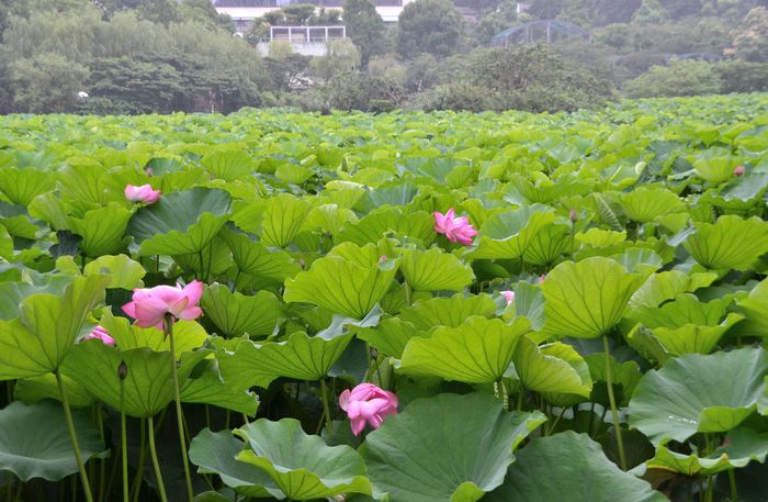 A côté du zoo, se trouve l'étang de Shinobazu : celui-ci, caractéristique du quartier Shitamachi, connu pour son histoire et ses œuvres d'art. Cet étang naturel (bien qu'asséché une fois et modifié à plusieurs reprises) abrite plusieurs dizaines d'espèces migrateurs et sédentaires, dont le nombre peut parfois atteindre plus de 10 000 individus. On retrouve des fuligules morillon, des fuligules miloin et des canards pilet. L'étang contient aussi de nombreuses espèces de poissons. On a même trouvé, en 2006, des tortues alligator, espèces non indigènes, et l'on soupçonne la présence de tortues serpentines. Espèce endémique nord-américaine, la tortue alligator porte une carapace foncée, brun noir, souvent recouverte d'algues. Les mâles peuvent atteindre cent kilos pour une longueur de 75 cm. Et possèdent une puissante mâchoire. Mieux vaut ne pas se baigner à cet endroit! D'autant plus que les lotus recouvrent l'étang à cette époque de l'année.