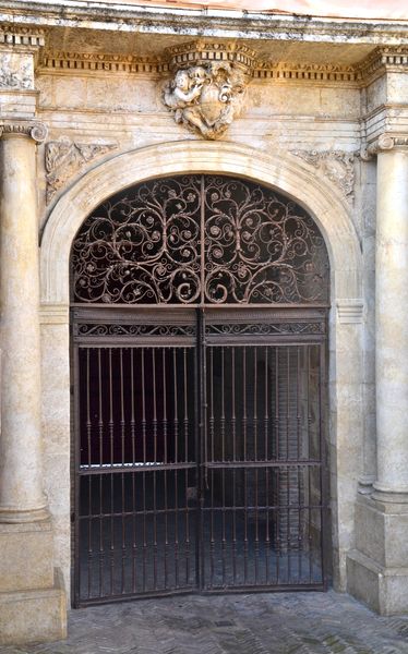 Le terrain sur lequel se dressent les arènes est un endroit de faible élévation, face au Guadalquivir, et est connu sous le nom de monte del Baratillo. Il est situé entre le Paseo Colon, la Calle Adriano et la Calle Antonio Diaz, et forme un triangle avec ses dépendances. Contrairement aux autres arènes espagnoles, la Maestranza s’insère complètement dans le tissu urbain de la cité, symbolisant le profond ancrage de cette institution. L'accès à certains secteurs des gradins supérieurs se fait à travers des portes donnant sur la Calle Adriano. Une simple ruelle, la Calle Circo, en partie couverte sous forme de passage, entoure l'arène et marque la frontière entre l'enceinte taurine et le reste des bâtiments. Les arènes (en photo ci-dessous) se présentent sous la forme d'un polygone à trente côtés inégaux. On note une nette influence du style baroque tardif dans l'architecture, qui tend cependant vers le classicisme. La façade est flanquée, face au fleuve, d'une gracieuse porte principale (deuxième photo), appelée la porte du Prince, qu'on n'ouvre que pour les toréadors totalisant trois trophées (les deux oreilles et la queue du taureau). Le dernier à avoir franchi cette porte s'illustra en...1971. La porte est encadrée par deux tourelles couronnées de toits de tuiles à quatre versants, percées d'oculi et de portes surmontées de frontons à volutes originaux. La porte se compose de deux corps ou niveaux. Le niveau supérieur est un balcon à balustrade relié au Balcon du Prince à travers une porte flanquée de pilastres doriques et d'un fronton. L'ensemble est élégant avec ses murs chaulés soulignés par les pointes d'ocre et de rouge sombre ornant certains éléments décoratifs. Le côté sud est quant à lui agrémenté d'une terrasse en premier niveau donnant accès aux gradins supérieurs. Ce corps de gradins est précédé d'une galerie à arcades fermée vers l'extérieur par une belle balustrade ajourée.