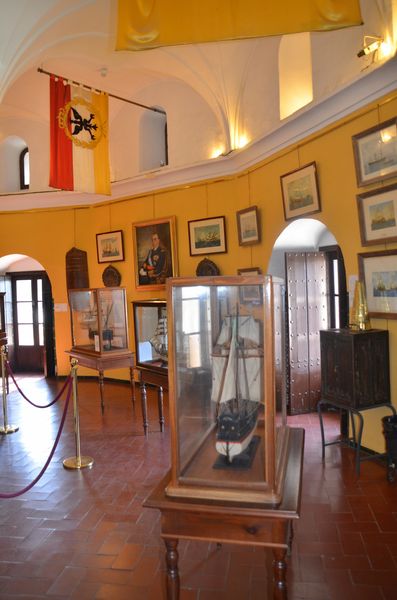 A l'origine, cette Tour de l'or ne possédait qu'un niveau. C'est le roi Pierre Ier de Castille qui fera construire le deuxième niveau, dodécagonal comme le premier, au XIV è siècle. Le lanterneau circulaire qui forme le troisième niveau date de 1760 et est l'oeuvre de l'ingénieur militaire Sebastian Van der Borcht. La Tour fut restaurée en 1900, puis entre 1942 et 1944 pour y créer un musée maritime (appelé aujourd'hui musée naval, en photo ci-dessous), lequel présente sur environ 650 m2 gravures, photos, lettres, modèles réduits, instruments de navigation et documents historiques. Quatre cents de ces pièces proviennent du musée naval de Madrid. L'endroit souligne ainsi l'importance de l'histoire navale de Séville et l'importance du Guadalquivir pour la cité (que l'on peut admirer du haut de la tour, en troisième photo)